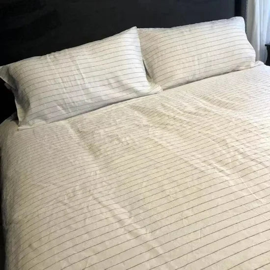 Realizziamo la biancheria da letto in lino come dovrebbe essere fatta. 100% lino di lino europeo, lavato con pietre per una maggiore morbidezza e costruito per durare decenni. Il nostro lino migliora a ogni lavaggio — più morbido, più confortevole, più bello.